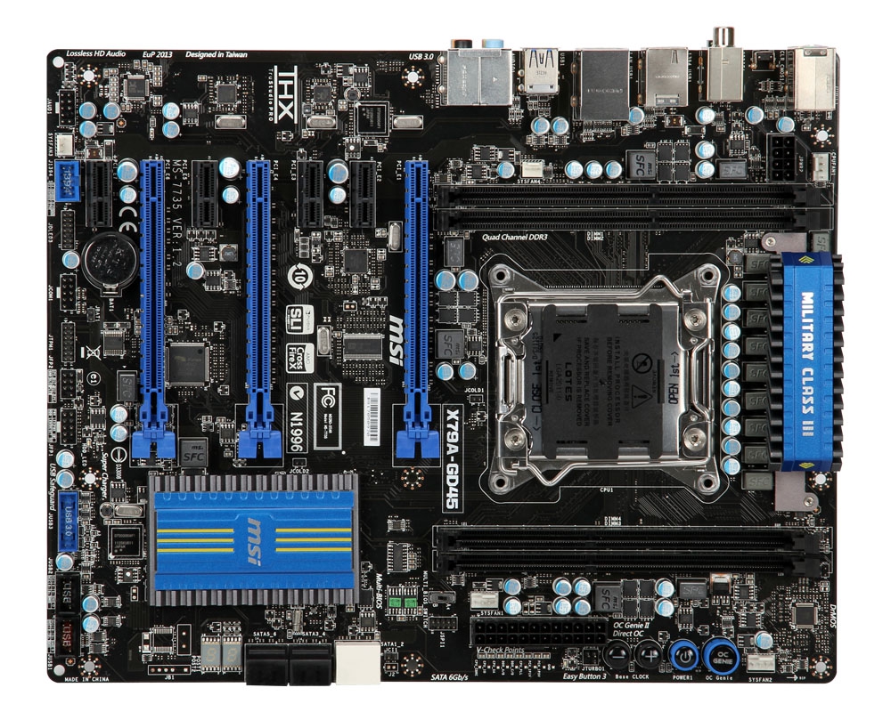 Az MSI műhelyéből már az elmúlt napokban is szivárogtak a különböző X79 variánsok, a mai napon viszont hivatalosan négy új modellt jelentettek be: X79A-GD65 (8D), X79A-GD65, X79A-GD45 és X79MA-GD45. Megjelenésük és színviláguk nagyon hasonló, a tornasorból csupán a X79MA-GD45 lóg ki microATX szabványával. A zászlóshajót a X79A-GD65 (8D) és X79A-GD65 páros képezi, néhány apróságot leszámítva felépítésük és funkcionalitásuk lényegében azonos, csupán a memóriafoglalatok számában különböznek. A (8D) végződés az előbbi elnevezésében a dupla mennyiségű, vagyis nyolc darab DDR3 modul támogatására utal. A vezérlő a 16 GB-os egységeket is kezeli, így ezen a deszkán akár 128 GB RAM is felhalmozható (már ha pont erre lenne szükség).