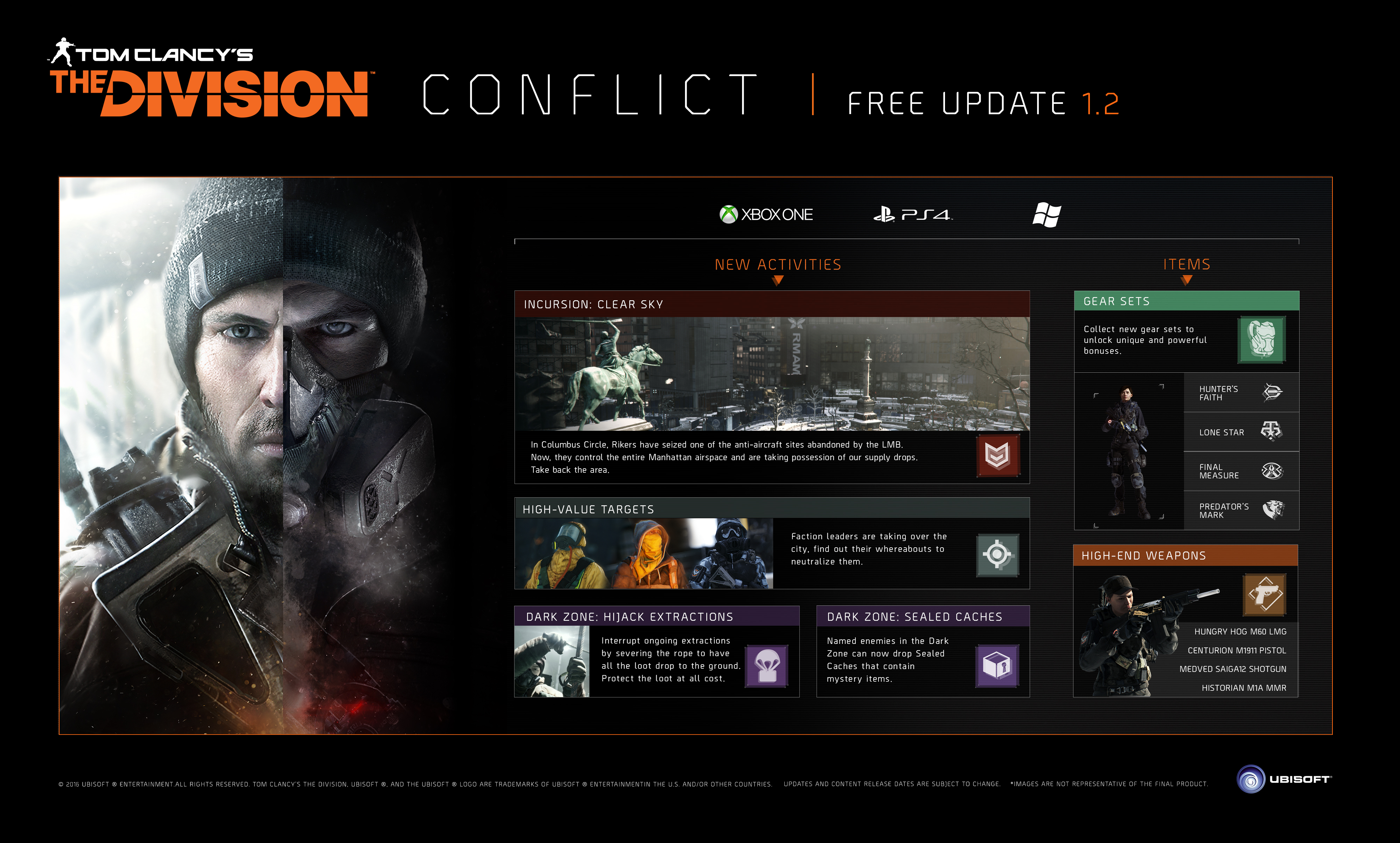 Júniusban várható a The Division első fizetős DLC-je, addig is azonban a készítők korábbi ígéretéhez hűen kapunk még egy ingyenes tartalmat. A Conflict nevű frissítésről korábban már többször volt szó, nemrég azonba kiderült, hogy már csak pár napot kell várni, és megkapjuk a legújabb Incursiont, valamint érkezik rengeteg új fegyver, kapunk új küldetéseket, valamint talán ismét érdemes lesz a Dark Zone-ban is harcolni.