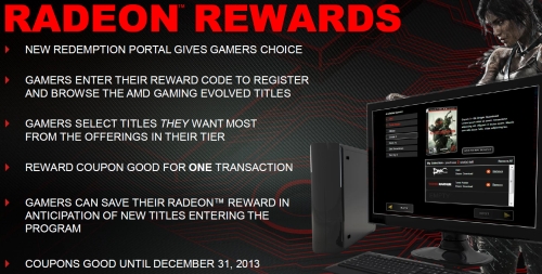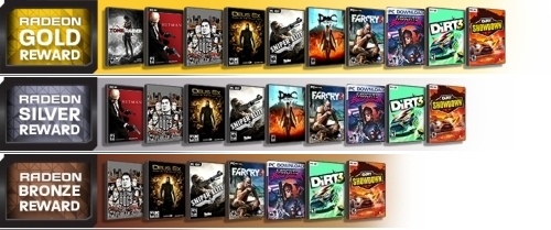 Látható, hogy a bronz kuponnal hat játék közül lehet választani, de csak egyet. Az ezüst esetében már nyolc játékból lehet kettőt igényelni, míg az arany jutalom mellett kilenc játékból három lehet a vásárlóé. A kuponok továbbra is egy kódot tartalmaznak majd, mellyel regisztrálni kell a Radeon Rewards oldalra, és ott lehet beszerezni a kiválasztott játékok letöltéséhez szükséges kódokat.