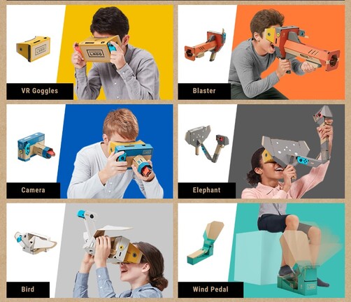 A Switch tehát gyakorlatilag kap egy olyan csomagot, ami lényegében a karton segítségével helyezi a virtuális valóságba az élményt. A 80 dolláros teljes szett áll magából a headsetből, illetve ehhez még további öt kiegészítő jár (Blaster, Camera, Bird, Elephant és Wind Pedal). Ugyanakkor lesz egy 40 dolláros szimpla kezdőcsomag is, ami csak a headsethez szükséges kartont tartalmazza a Blaster kiegészítő mellett, a Camera és Elephant, illetve a Bird és Wind Pedal párosítás pedig megvásárolható utólag, méghozzá 20-20 dollárért.