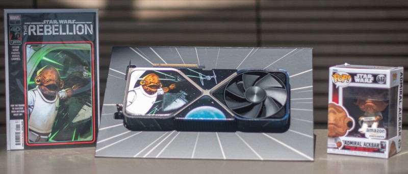 Az NVIDIA egy friss nyereményjátékot hirdetett, amelynek részeként egy Ackbar admirálissal díszített GeForce RTX 4080-as VGA-t, egy Admiral Ackbar Funko Pop figurát, illetve egy Star Wars: Return of the Jedi - The Rebellion képregényt lehet nyerni. Mindössze annyit kell tenni, hogy kedvelni kell a vállalat Facebook, X, Instagram, TikTok oldalát, és kommentelni kell a kedvenc Star Wars emlékünket, méghozzá #RTXON megjegyzés mellett.