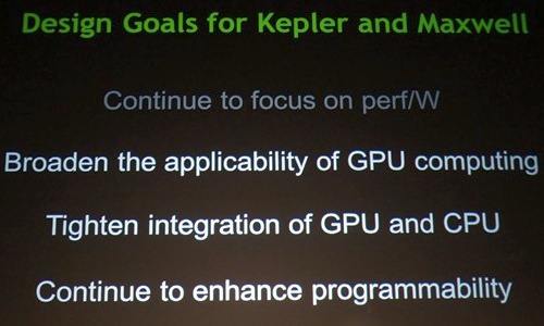 Az új generációs Kepler és Maxwell architektúrák tervezésénél tehát a legfőbb szempont az energiahatékonyság volt, vagyis a wattonként értendő egységnyi teljesítmény növelése. Emellett ki kell terjeszteni a GPU-k alkalmazhatóságát, illetve növelni kell a programozhatóság hatékonyságát. A legfontosabb lépcső azonban felkészülni az integrációra, így a Kepler és Maxwell architektúrák fejlesztésénél már számottevő szempont, hogy szorosan integrálható legyen a rendszer a processzormagokkal. Steve Scott elmondta, hogy a Maxwell generáció ebből a szempontból értékes újításokat tartogat, hiszen a processzorarchitektúrát az integrált grafikus vezérlőhöz igazítják, de a Kepler architektúra is nagyon fejlett lesz, hiszen támogatni fogja az ARM virtuális memóriát. A támogatott funkciók egy része persze platformszolgáltatás lesz, így a Kepler egy cGPU formájában nem tudja majd kamatoztatni mindazt, amire az architektúra elméletben képes. Az NVIDIA itt kitért arra, hogy az operációs rendszer oldalán számottevő fejlesztések szükségesek, ugyanis a virtuális memória támogatása a GPU-k felől jelenleg limitációkba ütközik. Steve Scott szerint az aktuális operációs rendszereknél nagyon sokat kell trükközni az egyes funkciók kezelhetőségéhez, de a jövőben ez megváltozik, ami jelentősen kiterjeszti a fejlesztők lehetőségeit.
