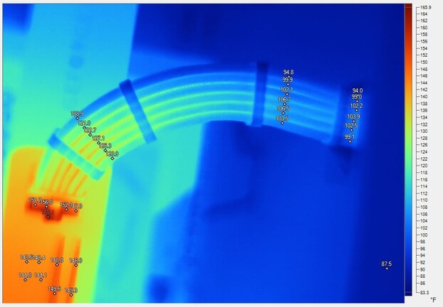 Ez megmagyarázza azt, hogy miért állíthatták az elmúlt években az egyes felhasználók, hogy a tökéletes rögzítés ellenére is leégett a 16 tűs tápcsatlakozó, viszont a történet itt még nem ért véget. A játékosoknak szánt számítógépek összeállításával foglalkozó Falcon Northwest, az alábbi X bejegyzésben szinte azonnal reagált der8auer videójára, miszerint a saját laborjaikban nem azt látják, amit a német tuningos. Náluk a kábelek vezetékei nagyjából egységesen melegednek, vagyis hasonló áramerősség futhat át rajtuk.