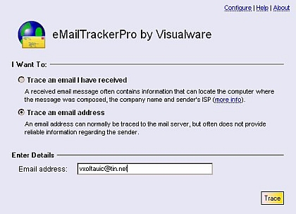 A Visualware érdekes szoftvert dobott a piacra. Az eMailTrackerPro program e-mailek nyomkövetésére szolgál. Ez különösen akkor lehet hasznos, ha arra kíváncsi a felhasználó, hogy a spameket vagy az adathalászat céljából küldött leveleket honnan küldik postaládájába, esetleg azonosíthatja az aukciós portálokon megjelenő vevőket/eladókat. A készítők szerint a szoftver alkalmas arra is, hogy a szülők gyermekeik levelező- vagy csetpartnereit is le tudják ellenőrizni.