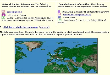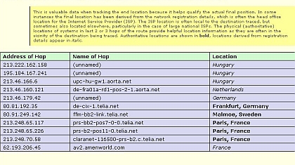 A 30 dollárba kerülő program szabadon kipróbálható verziója 15 napig használható. Letöltöttük, kerestünk egy spamet a postaládánkban (nem volt nehéz…), hogy megnézzük mit is csinál az eMailTrackerPro. Két lehetőség áll a felhasználó rendelkezésére. Az egyik esetben a levél fejlécét kell bemásolni a program megfelelő ablakába, s az itt található adatok alapján történik az azonosítás. Hogy miképpen keressük meg ezeket az alapbeállításban általában nem látható adatokat, arról a program honlapján kapunk eligazítást, ahol a legnépszerűbb levelezőkliensek beállításait magyarázzák el a fejlesztők. Bemásolás után csak meg kell nyomni a Trace billentyűt, és már jön is az eredmény. Megjelenik a feladó, s egy újabb kattintással a levél útvonalát is végigkövethetjük.