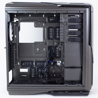 Méreteit tekintve az új ház semmivel sem visszafogottabb, mint az eddigi modellek (235 x 612 x 650 mm), sőt, XL-ATX mérettől kezdve mini-ITX-ig mindenféle alaplapot képes befogadni, és a grafikus kártyák számára is 350 mm-es helyet biztosít. Ezekhez természetesen mellékelték a megfelelő kivágásokat és gumival bélelt kábelbújtató réseket, hogy mindegyik alaplapméret esetén megoldható legyen a madzagok esztétikus elvezetése. Meghajtóhelyekkel is bőven ellátták az újdonságot, hiszen 90 fokban kinyitható előlapja mögött 4 darab 5,25" meghajtóhely, belül pedig további 2x3 darab 3,5/2,5 colos, tálcás rendszerű, kivehető rekesz sorakozik, ami az NZXT Switch 810-ről lehet ismerős.