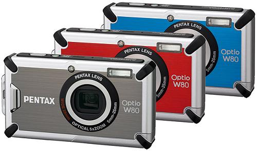 Már júliusban a boltokba kerülhet a Pentax új "mindenálló" kompaktja, az Optio W80. A készülék akár a nyaraláshoz, kirándulásokhoz is kiváló lehet, mivel ütés-, hideg-, víz- és porálló (1 méteres magasságig, -10 C°-ig, 5 méteres mélységig). A már 28 mm-től induló optika 5x-ös zoomtartományt fed le és átlagos fényerővel bír. Manapság már elvárás a hardveres stabilizátor szinte minden gépben - sajnos ilyennel nem rendelkezik az új Optio. Ennek kompenzálására ugyan többféle digitális elmosódáscsökkentéssel is felvértezték a kis gépet, azok teljesítménye azonban nem veheti fel a versenyt az optikai, vagy szenzoreltolásos rázkódáscsökkentéssel. Pozitívum viszont, hogy a W80 makrózásra is alkalmas, hiszen akár a frontlencsétől 1 cm-re levő tárgyat is megörökíthetünk. Az előnyök között említhető még meg a HD videó mód is, mely 1280 x 720 -as felbontásban képes 30 FPS-sel rögzíteni mozgóképet, és a látószög kibővítése (szoftveres úton, két képből). A Pentax Optio W80-at 300 $ körüli áron (~60 000Ft) lehet majd elérni piros, kék és szürke változatban.