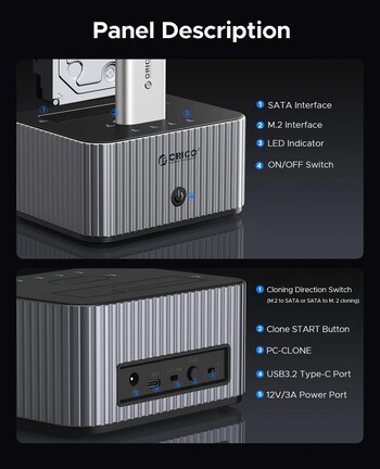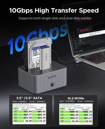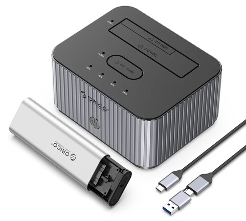 Az Orico útjára indította az IT28E-C típusjelű, 150 mm széles, 73 mm magas, valamint 120 mm mély dokkolóját, ami – egy különálló fémmodulban – M.2 2230/2242/2260/2280 Key M formátumú NVMe SSD-t, plusz egy 2,5 vagy 3,5 hüvelykes SATA meghajtót képes gépünkhöz kapcsolni.