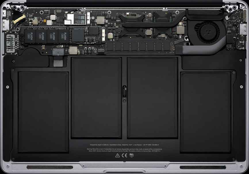 A kisebbik modellbe 1,4 és 1,6 GHz-es, a nagyobbikba pedig 1,8 és 2,13 GHz-es órajelű Intel processzorok kerülhetnek. Alapesetben 2 GB DDR3-as rendszermemória biztosított, de ez duplájára is növelhető. A grafikus megjelenítést az NVIDIA GeForce 320M-je intézi, ami egyben a lapkakészlet is. A chipet a zöldek kifejezetten az Apple kérésére készítették el. A régebbi típusokkal ellentétben az új Airben SSD háttértár található, ami ráadásul a helytakarékosság miatt rögtön az alaplapra van integrálva. A tárkapacitás 64 és 128 GB lehet a 11”-es masinánál, és 128 vagy 256 GB a 13-asnál. Helyet biztosan spórolnak ezzel a megoldással, de félő, hogy egy meghibásodás az egész alaplap cseréjét vonja így maga után, ami viszont nem tűnik túl költséghatékonynak.