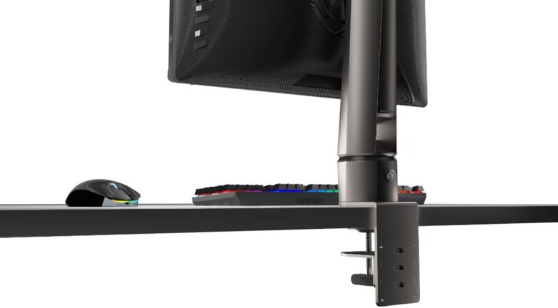 Ebben ugyanazt a 360 Hz-es maximális frissítésre képes 24,5”-es, Full HD felbontású IPS panelt találjuk, mint a másikban, megmaradnak a kiegészítők, a HDR 10 és a G-Sync technológia, viszont az R betűért cserébe egyrészt kapunk egy asztalra rögzíthető tartót is a csomagban, másrészt használhatjuk az NVIDIA Reflex Latency Analyzer megoldásának egy kiegészítését, feltéve, hogy kompatibilis egeret (amit mit ad isten, az ASUS is gyárt) csatlakoztattunk a kijelzőhöz. Magáról a Reflexről részletesebben itt írtunk. A kijelzőbe épített megoldás arról szól, hogy folyamatosan mérhetjük a teljes rendszer késleltetését az egér gomb megnyomásától a lövés pixeleinek megjelenéséig, az így kapott adatokkal pedig megkereshetjük az optimális beállításokat, dicsekedhetünk barátainknak vagy mutogathatunk rájuk egy elvesztett meccs végén, ízlés szerint. Ami az extra tartót illeti, ennek előnye, hogy lényegesen kevesebb helyet foglal az asztalból, mint a hagyományos láb, közelebb lehet kerülni a képernyőhöz.