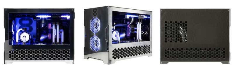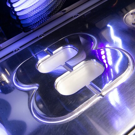 Az alkatrészek energieállátásáról egy 1000 wattos, 80 Plus Platinum hatásfokra képes ASUS Loki SFX-L tápegység gondoskodik, amely természetesen eleget tesz az ATX 3.0-s szabványnak. A komponenseknek otthont adó, tükröződő felületű alumíniumház ugyancsak egyedi tervezés eredménye, és a balról ablakos kalyiba belsejét szénszálas panelek dobják fel, de ha ez nem szimpatikus, gyöngyfúvott kültakaróra, még több szénszálra, Cerakote kezelésre vagy akár full akril kivitelre egyaránt voksolhatunk.