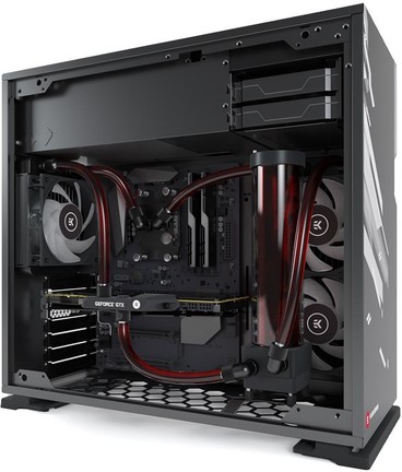 Saját PC-márkát indít a vízhűtéshez gyártott alkatrészeiről ismert EK, EK Fluid Gaming Systems néven. A jelenleg háromféle konfigurációban rendelhető gépekben természetesen a cég komponenseiből összeállított hűtőrendszer dolgozik, előre feltöltve és légtelenítve, a CPU-t és a grafikus kártyát hidegen tartva. A számítógépek alapját minden esetben az edzett üveg oldalfallal szerelt In Win 101C ház adja, egyedi festéssel, tápegységből pedig az EVGA Supernova G3 sorozatából tudunk válogatni, a 650, 850 illetve 1000 wattos teljesítményű modellek között. Ami a további komponenseket illeti, a CPU a Ryzen 2000 sorozatból kerülhet ki, míg az alaplapok és a grafikus kártyák az MSI termékpalettájáról választhatóak, GTX 1060 6 GB-tól egészen SLI-be kötött GTX 1080-ig.