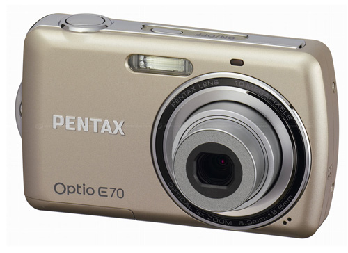 A belépő kategóriába tartozó Pentax Optio E70 teljesen automata "green" módot kapott, amely a fotós helyett minden paramétert optimalizál. A tíz megapixeles érzékelővel szerelt készülék egyszerűsége ellenére rendelkezik háromszoros bemozdulás-védelemmel, "szupergyors" arcfelismeréssel, és hétféle fotózási móddal. Az E70 objektívje háromszoros optikai zoomal bír, szenzora 1/2.3" méretű.