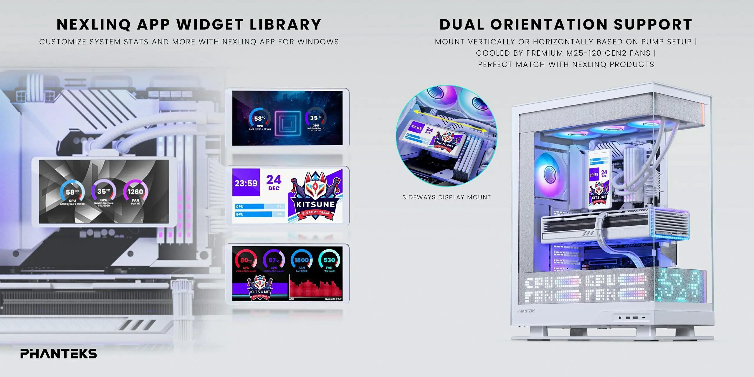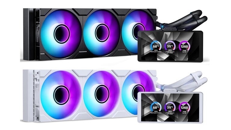 A Phanteks piacra dobta a Glacier One 360M25 LCD névre hallgató kompakt AIO-ját, amelynek az a szexepilje, hogy réztalpas pumpa/blokk kombójának tetején egy 6 hüvelykes, 1480x720 pixeles felbontású IPS kijelző trónol, a maga 60 Hz-es képfrissítési rátájával és 250 cd/m²-es fénysűrűségével.