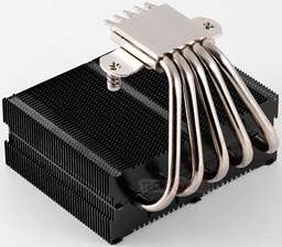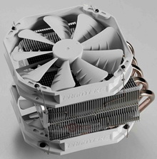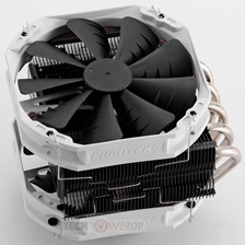 A két ventilátor úgy helyezkedik el, hogy az egyik a hűtőborda tetején ül, míg a másik az alján függeszkedik, így például ha szűkös helyre (pl. HTPC-be) akarunk tisztességes és halk megoldást, akkor csak az alsó légkavaró bevetésével 112 mm-re csökkenthető a magassága.
