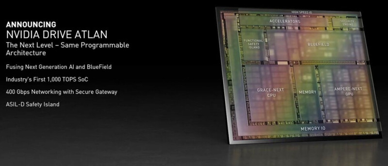 Végül szót érdemel az Orin kódnevű rendszerchip utódja, amely Atlan kódnéven készül, és az NVIDIA ebbe már integrálja a Bluefield technológiát, vagyis kap DPU-t is. A vállalat szerint ez lesz az iparág első rendszerchipje, amely 1000 TOPS-os AI számítási teljesítményt képes majd kipréselni magából, de erre 2025-ig várni kell.