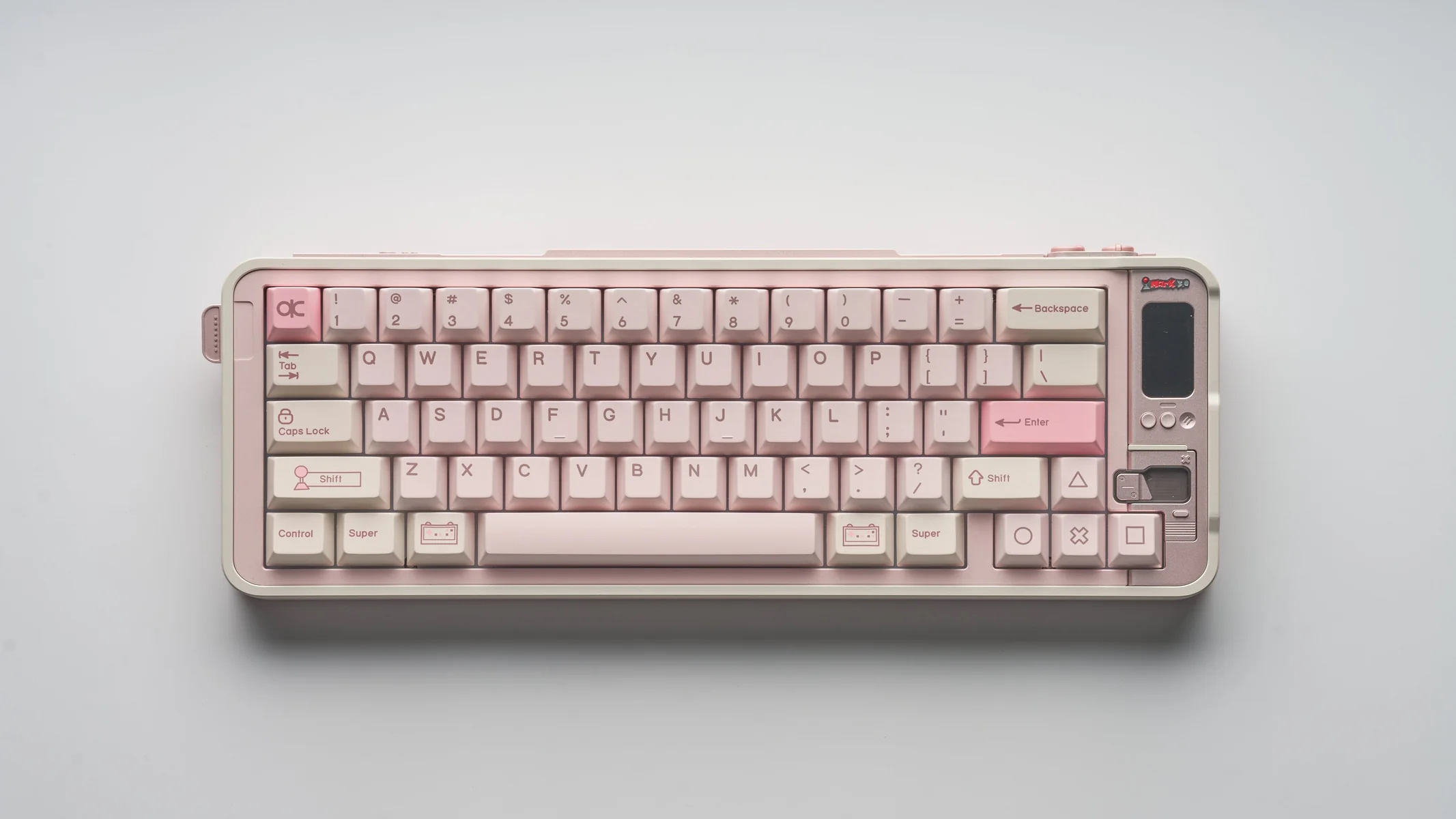 A 65 százalékos formátumú, PCB gasket mountos periféria mára rendelhető státuszba került, és porfestve szürkében, törtfehérben, joghurtrózsaszínben vagy pasztellzöldben, eloxálva pedig bazaltszürkében érhető el. Az alumíniumházas újdonság jobb felső sarkában egy csöppnyi képernyő nyert elhelyezést, amire háromféle animációt rakhatunk ki, de a két, hátoldalon lévő tárcsával (az egyik a Windows/Mac üzemmódok, a másik meg a célgépre történő kapcsolódás fajtája között vált) megejtett machinálásunkat is nyomon követhetjük rajta, plusz képes megjeleníteni a pontos időt, a dátumot vagy épp a töltöttségi szintet.