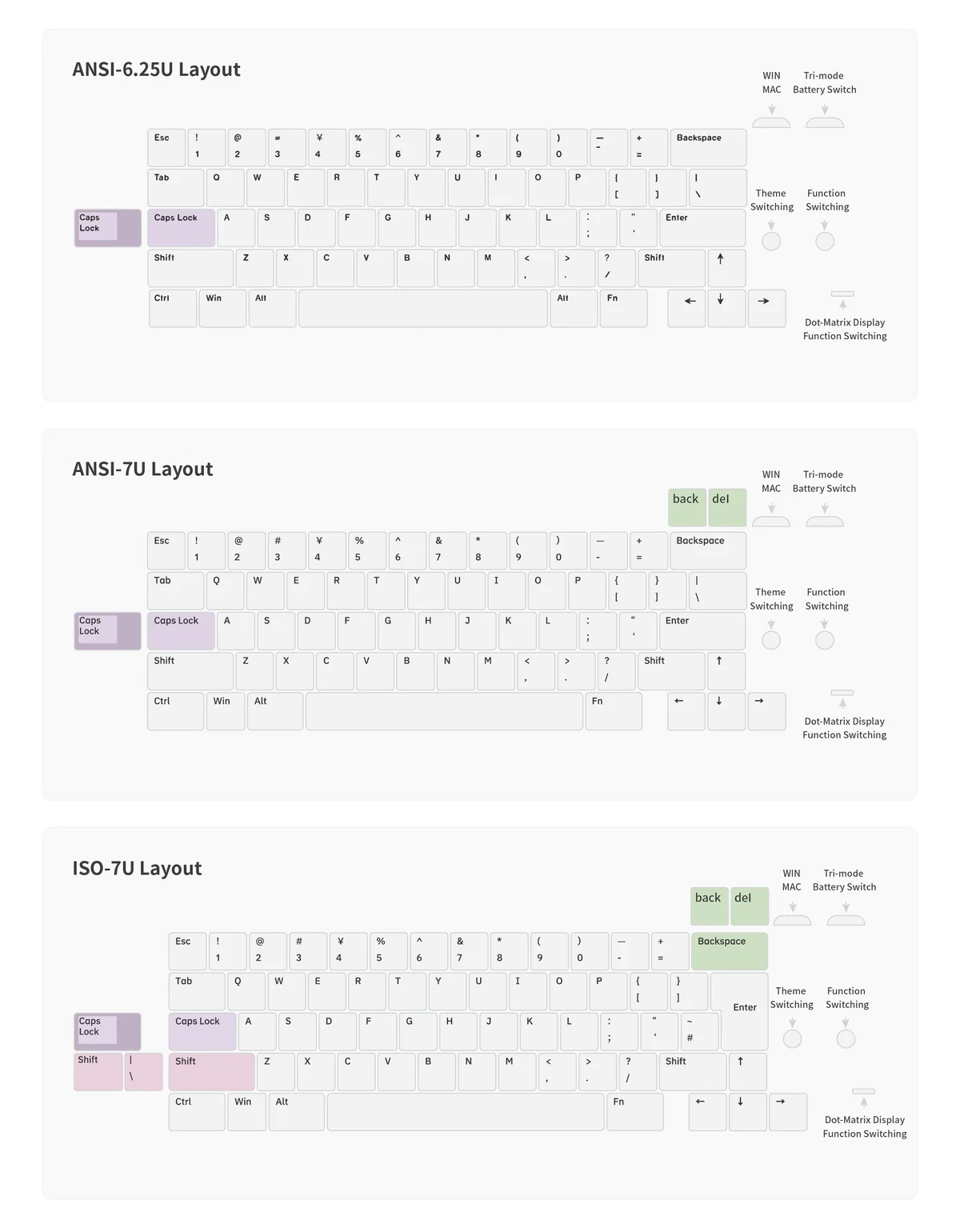 - 1,6 mm vastag, nem flex cutos ANSI, hot swap, 7u széles spacebar
