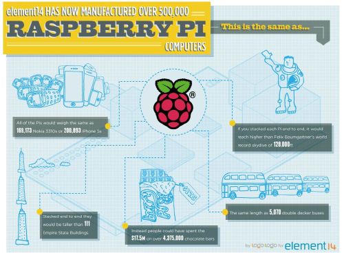 Az element14 annak tiszteletére, hogy túl vannak a félmilliomodik darabon, egy érdekes, statisztikai adatokat illusztráló képet készített. E kép tanúsága szerint, ha ezt az előállított mennyiséget egymás után raknánk, akkor például 5070 darab klasszikus londoni emeletes busz (nevén nevezve double-decker) hosszát kapnánk, vagy ha együtt lemérnénk a tömegüket, akkor az 169 173 darab Nokia 3310 vagy 200 893 darab iPhone 5 tömegének felelne meg. De a többi összehasonlítás is ugyanúgy érdekes.