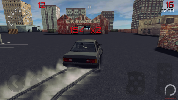 Az irányítás visszatért a Lada Driftingből, amelyet a képernyő alján elhelyezett gáz, fék, jobbra és balra ikonokkal tudunk kezünkbe venni, de válthatunk készülékmegdöntős kormányzásra is. Szerintem a fizika továbbra is rendben van, bár életemben nem drifteltem még igazából, hogy szakértői véleményt megfogalmazhassak. Pályából ötféle akad (parkoló, Shanghai, Utah, Gymkhana és Trackwood), illetve mindegyikből választható nappali és ékszakai változat. Grafikailag persze a Real Drifting nem tudja felvenni a versenyt a nagy fejlesztőcégek komoly költségvetésű tételeivel, a Lada Driftinghez képest mindenesetre észrevehető a fejlődés. A későbbiekben további pályák és járgányok jöhetnek.