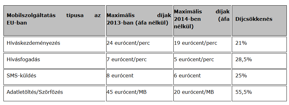 Az Európai Bizottság hivatalosan egy hete jelentette be a változásokat, és akkor azt emelték ki, hogy különösen az adatforgalmazásnál esnek nagyot az árak: megabájtonként 45 eurócentről 20 eurócentre csökken a barangolásos adatletöltésre kivethető díj maximális összege. Ennél is kevesebbet kell majd fizetniük azoknak, akik az Európai Unión belüli utazásaik során mobiltelefonjukat használják arra, hogy térképeket böngésszenek, videofelvételeket nézzenek meg, elolvassák e-mailjeiket, vagy frissítsék közösségi oldalukat.
