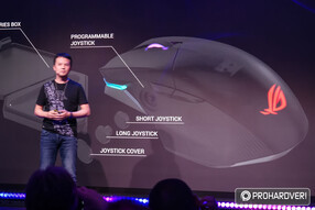 A sort a perifériákkal érdemes nyitni, azon belül is az új ROG Chakram egérrel, melynek különlegessége, hogy oldalsó gombjai mellé egy joystick is került, mely kifejezetten hasznos lehet például olyan játékoknál, melyeknél időnként járműveket is irányítunk, vagy ahol nagyon sokféle mozgásforma áll rendelkezésre. A szóban forgó joystick analóg és digitális üzemmóddal is rendelkezik, a minden ízében felső kategóriás egér dobozában található kiegészítőkkel pedig formáját is testre szabhatjuk.
