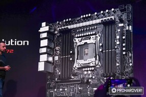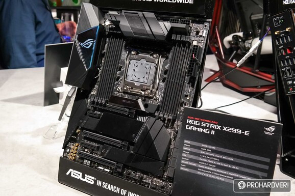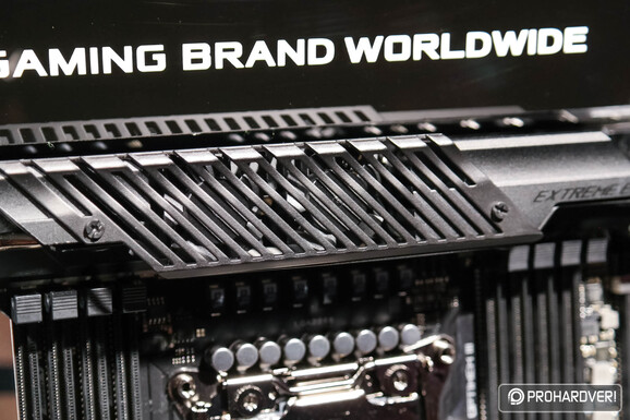 Az alaplapi oldalon két X299-es újdonságot kapunk: az új csúcs-csúcs lapot, a Rampage VI Extreme Encore-t, mely az Omega igen közeli testvére, hasonlóan impozáns, szerverekbe illeszkedő specifikációkkal. A termék érdekessége, hogy teljes 16 fázisú tápellátást kapott, azaz nincs semmiféle duplázás vagy más trükk, 16 darab Infineon TDA21472 dolgozik egy 650 wattra méretezett, két ventilátoros hűtés alatt. Hogy ne legyen túl zajos a gép, a két említett ventilátor csak akkor kapcsol be, ha a VRM részleg hőmérséklete meghaladja a 60 Celsius fokot. Mint a fotókon is látszik, burkolatból nincs hiány, hűtést kapott a déli híd és a lapon található két M.2 foglalat is, míg további két, szintén hűtőbordákkal kiegészített M.2 foglalatot az ismerős DIMM.2 kártya biztosít.