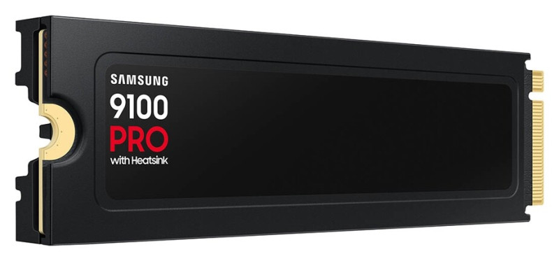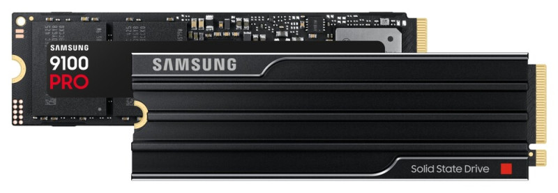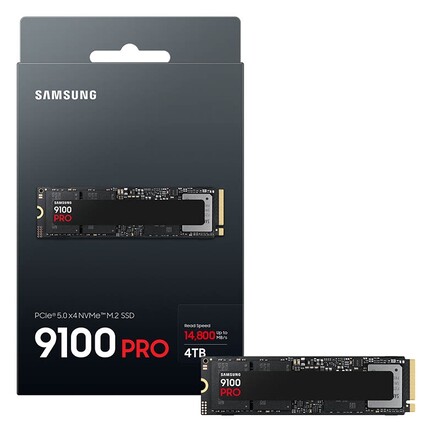 A Samsung legfrissebb M.2-es SSD-jét 9100 PRO-nak hívják, és csupaszon vagy alumíniumbordázattal egyaránt választható. A 22 x 80 mm-es megoldás x4-es PCI Express 5.0 interfésszel, valamint 2.0-s NVMe protokollal dolgozik, és házon belül fejlesztett kontrollere 200-cellarétegű TLC V8 NAND flash lapkák felett bábáskodik.