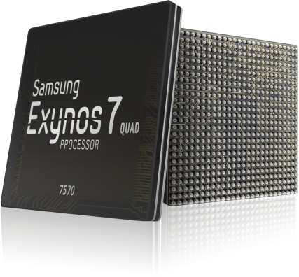 Az új Exynos 7570-es SoC a belépőszintű telefonokat célozza. Természetesen 64 bites processzormagokat használ, de a célpiac miatt elég volt négy darab Cortex-A53-as opciót alkalmazni. Ezek órajele ugyanakkor nem derült ki, de a Samsung szerint 70%-kal nőtt a teljesítmény, amit feltételezhetően az elődnek számító Exynos 3470 és 3475 jelzésű rendszerchipekhez mértek. Mindemellett még az energiahatékonyság is 30%-kal nőtt.