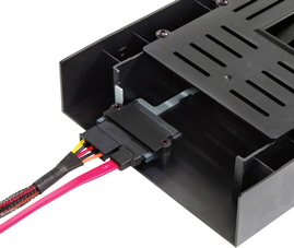 Beszerelése egy optikai meghajtó installálásának „komplexitásával” vetekszik, a csomagban mellékelt nyolc csavar segítségével bármilyen házba stabilan rögzíthető. Természetesen menet közben is lehet cserélgetni az adattárolókat, vagyis ehhez a manőverhez nem szükséges a számítógép kikapcsolása. Mérete 148.,5 x 42,5 x 177 mm, tömege 180 gramm.