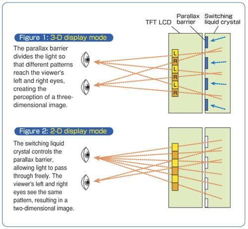 A 3 dimenziós effekt egyébként úgy jön létre, hogy két LCD-panelt egymásra montíroznak. Az első panel a TFT-technológiát alkalmazza, míg a második ellenőrzi a fénysugarak útját, ezáltal pedig a megjelenítendő képeket is, amelyeket a bal, illetve a jobb szemünk lát. Ahhoz azonban, hogy "igazi" három dimenziós hatás jöhessen létre, a bal és a jobb szemnek különböző információkat kell kapnia. Az egyedi technológia miatt kerül a Sharp RD3D borsos 2990 dollárba.