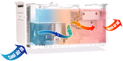 A Shuttle bemutatta első pico-BTX specifikáció szerinti barebone-számítógépét, SB86i-t. Az újítás előnyei között a gyártó kiemeli, hogy el lehet tekinteni az egyedi hűtési-szerelési megoldásoktól, és lehetőség van standardizált alkatrészek – például BTX-es CPU-hűtőmodul – alkalmazására. Amint az ábrán látható, a processzor hűtésére a diszkréten az előlap mögé rejtett réseken belépő hűvös levegő szolgál, amely felmelegedve a hátlapon távozik. A borda megnövelt felülete megengedi, hogy a ventilátor alacsonyabb fordulatszámon pörögve kisebb zajt csapjon, ám a Shuttle nemcsak ezzel igyekszik halkabbá tenni rendszerét – a meghajtók okozta vibrációk a rekeszekben elhelyezett gumialátéteknek köszönhetően nem tevődnek át a házra.