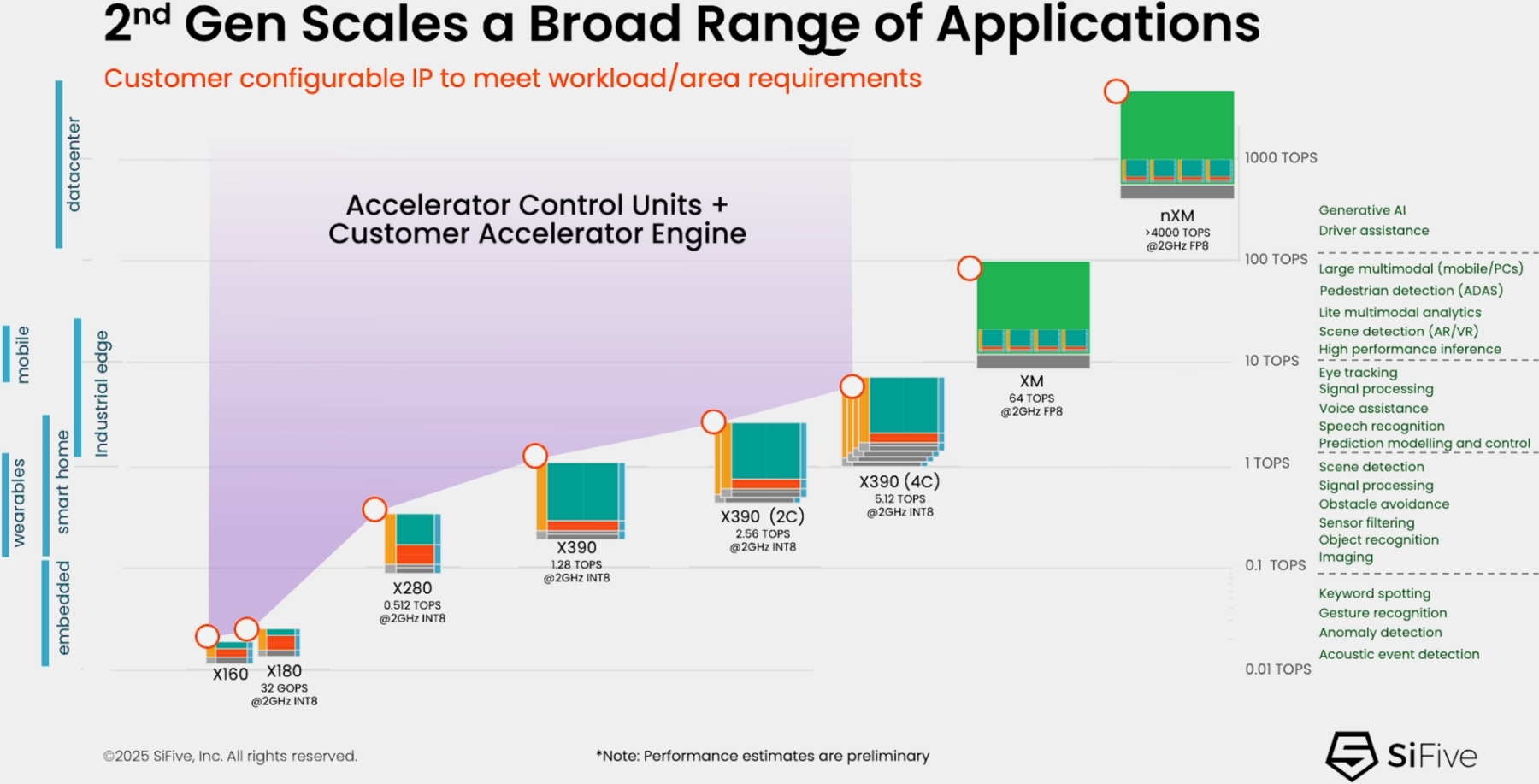 A friss fejlesztések igen nagy teljesítményspektrumot lefednek, és legerősebb kiépítésben, több XM klasztert alkalmazva akár 4000 TOPS is felkínálhat FP8-as adattípussal. A SiFive már várja a potenciális partnerek érdeklődését.