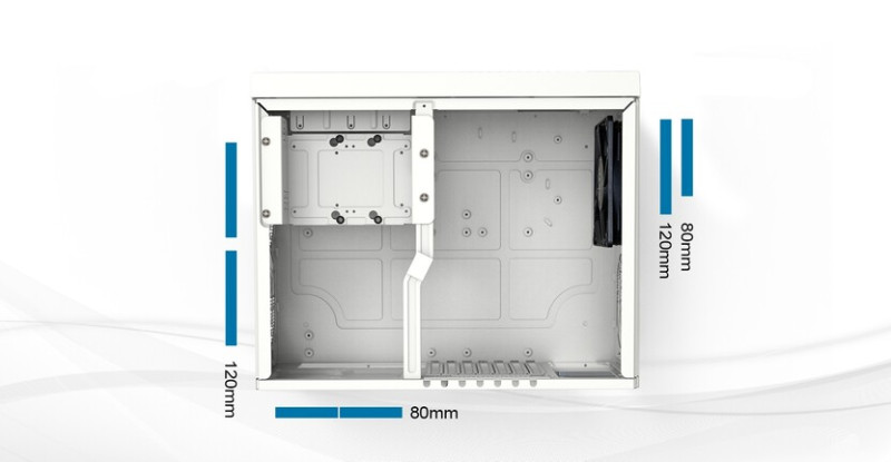 Az ATX-es tápegységek 170 mm-es hosszig támogatottak, adattárak tekintetében pedig egy 2,5, plusz egy 2,5 vagy 3,5 hüvelykes megoldásban gondolkodhatunk, de a fentebb említett, 5,25 hüvelykes helyre is beköltöztethetünk egy 3,5 vagy két 2,5 hüvelykes háttértárolót. A mérlegen 4,46 kilogrammot nyomó, porszűrőkkel ellátott géplak jobbján két 120 mm-es ventilátor állítható csatasorba (amelyekből egyet tartozékként megkapunk), a bal oldalon egy 120 vagy 80 mm-es légkavarónak van felfogatás, miközben hátul két 80 mm-es szélgép rögzítése biztosított.