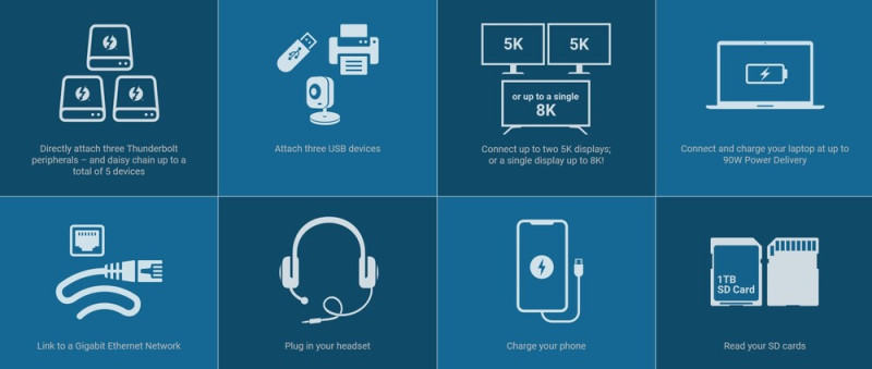 A legfeljebb 16 eszköz egyidejű csatlakoztatását támogató Echo 11-es lehetővé teszi, hogy a mobilgépek tulajdonosai az összes perifériájukat, külső adattárolójukat egyszerre, egyetlen Thunderbolt kábel segítségével kapcsolják a vasukhoz, s ugyanezen, 90 watt továbbítására képes kábellel az akkumulátor töltését ugyancsak megejthetik, ráadásul számítógépes környezettől függően a dokkolóba köthetnek egy szóló 4K/5K/6K/8K-s vagy két 4K-s/5K-s kijelzőt is. Érdemes megjegyezni, hogy macOS-en a Thunderbolt 2-es apparátusok sem rekednek a körön kívül, amennyiben élünk a külön megvásárolható adapter kínálta lehetőséggel.