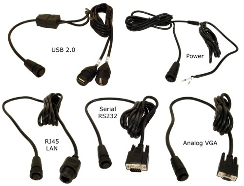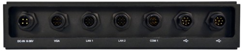 Természetesen egy számítógép esetében a csatlakoztathatóság is különös fontossággal bír, ezért a hátoldalán lévő ki- és bemenetek már ránézésre sem éppen szabványosak. Ehelyett a fenti védettségi osztálynak megfelelő speciális, bajonettzáras megoldást alkalmaznak, és ehhez természetesen a hozzá való speciális kábeleket is mellékeli a gyártó. Mivel nem játékgépről van szó, ezért nem csoda, hogy a dupla Gigabit Ethernet porton és bizonyos terep- vagy műhelymunkákhoz elengedhetetlen soros porton kívül komolyabbat nem kapunk, csak analóg VGA monitorcsatlakozást és USB kapunkat – és igen, valóban nincs hangkimenet!