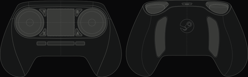 Természetesen a hátsó "ravasz" gombok sem maradnak el, ezekből négyet kap majd a Steam Controller. Fontos megjegyezni, hogy az új eszköz nem kizárólag a frissen bejelentett Steam Machines irányítója lesz, használható lesz bármilyen Steam alkalmazást futtató gépen. Kíváncsian várjuk a megjelenését.