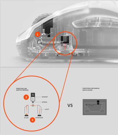A Prime Mini belsejében egy 100-tól 18 000 cpi-ig 100-as lépcsőkben skálázódó, 450 ips-es és 50 g-s TrueMove Pro szenzor lelt otthonra, ami elvileg a PixArt PMW 3389-es egy derivációja. Mivel a kábelmentes szegmensben az érzékelő fogyasztása kulcsfontosságú tényező, a Prime Mini Wirelessben egy TrueMove Air egység dolgozik, amelynek felbontása és léptékezése megegyezik a rokonéval, ám "csak" 400 ips-es perfect controlra és 40 g-s gyorsulástűrésre számíthatunk tőle – ha minden igaz, egy egyedi SROM-mal ellátott PixArt PAW 3335-ről van szó.