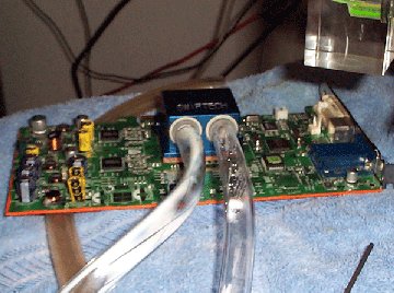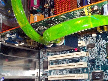 A hűtő a megfontolt kialakításnak köszönhetően bármelyik mai modern videokártyán elfér (kivéve az extrém kialakítású típusokat), legyen az Radeon vagy GeForce. A hűtésre váró áldozat egy MSI GeForce 4 Ti4400 volt, melyet tuningoltak is. A vizet egy Eheim 1048 pumpával hajtották meg. A teszthez 3DMark 2001-et és UT2003-at használtak.