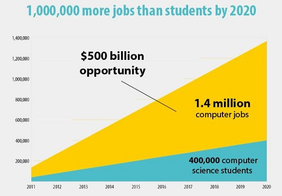 Statisztikák szerint a jelenlegi oktatási és bevándorlási rendszer fenntartása mellett az Egyesült Államokban egymilliós lesz az számítástechnikai, technológiai munkakörökhöz kapcsolható munkaerőhiány, nem csoda tehát, ha a szektor szereplői mindent megtesznek azért, hogy valamilyen megoldást találjanak a problémára. A Code.org mellett ma már egyre több rendezvényen próbálják népszerűsíteni a programozást, sőt, nemrég egy olyan kezdeményezés is elindult, melynek keretében hajléktalanokat tanítanak a kódolás rejtelmeire, akik így az átlagosnál jóval nagyobb eséllyel térhetnek vissza a munka világába.
