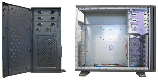 Az 5,25 és a 3,5 hüvelykes meghajtók csavarozás nélküli rögzítését egyaránt műanyag elemek, sínek könnyítik meg, és ugyancsak egyszerűen eltávolítható a HDD-keret melletti ventilátorok műanyag tartószerkezete is. Az elülső ajtó mögött három 5,25 colos és egy 3,5 colos meghajtórekesz érhető el, belülre pedig – 90 fokkal elforgatva – hat merevlemezt lehet elhelyezni.