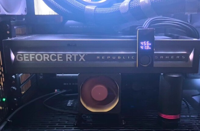 A fejlesztés 180 fokos fordított bekötést tesz lehetővé, ami sok PC-ben kedvezőbbnek mondható, de itt azért figyelembe kell venni, hogy ez a dizájn nem kompatibilis minden újabb GeForce VGA-val. Ha azonban fizikailag kivitelezhető a dolog, akkor egy olyan adapterhez jutunk, amin LCD kijelzős is található, és ez megjeleníti a mért hőmérsékletet, illetve a fogyasztást.