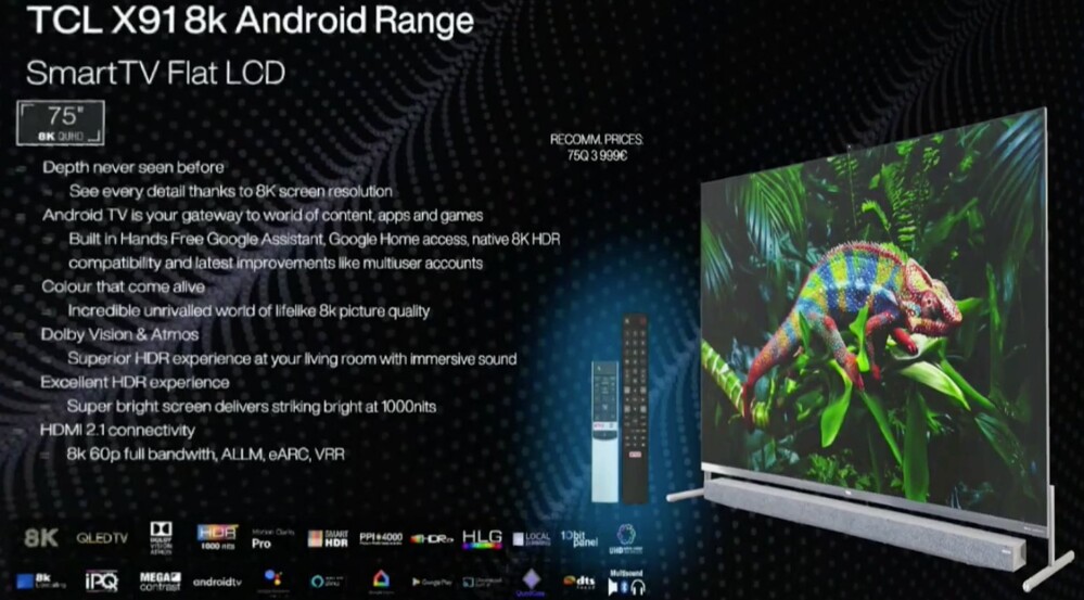 A TCL X915 4000 eurós, azaz 1 415 000 forintos ajánlott fogyasztói áron kerül majd a boltokba.