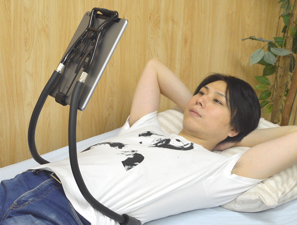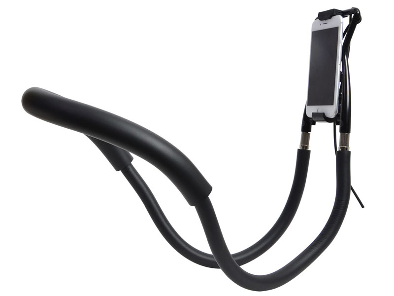 A Rakuchin fantázianevű eszköz egy rugalmasan formálható gumipánt, amely a derék köré vagy a vállra erősíthető, a túlsó végére egy konzol használatával pedig feltehető a mobil eszköz, ennek köszönhetően a felhasználó kezei szabadon maradnak. A gyártó szerint ez a megoldás egy csomó esetben igen hasznos lehet, például ha az ágyban fekszünk, és lusták vagyunk kinyújtani a kezünket, vagy a konyhában szeleteljük a húst, de nem akarunk lemondani a Facebookozásról közben. De beválhat városnézésnél is, ami biztos gyönyörű látvány lehet. Az ára mindenesetre legalább nem vészes, hiszen már 18 dollárért hazavihető.