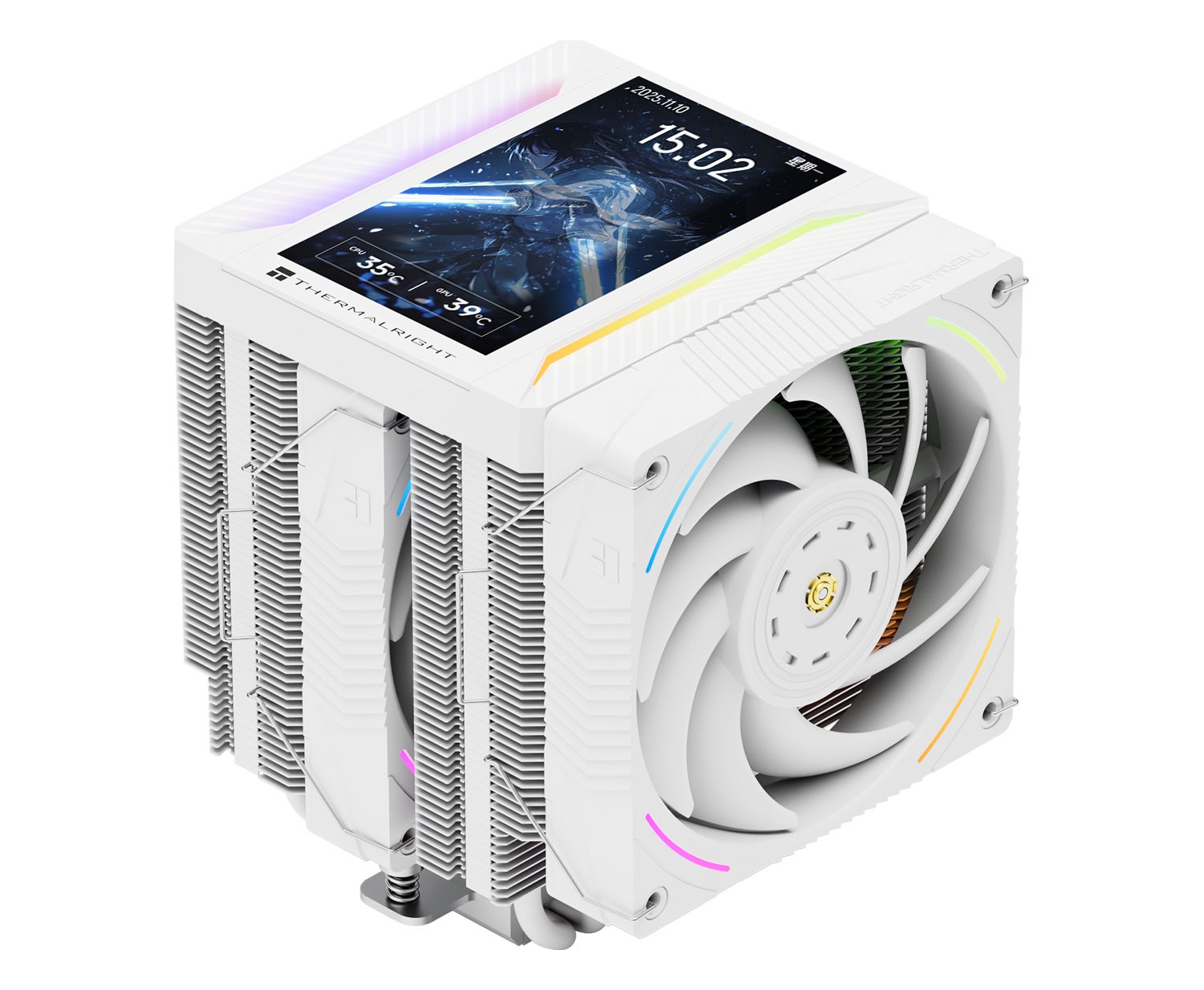 A Thermalright bemutatta a közismert Peerless Assassin 120 processzorhűtőjének alternatív vátozatát, melynek tetején egy 5 hüvelykes, 480x854 pixeles felbontású LCD kijelző trónol (címezhető fénycsíkokkal kiegészítve), nevében pedig a "Vision Max ARGB" utótagot hordozza.