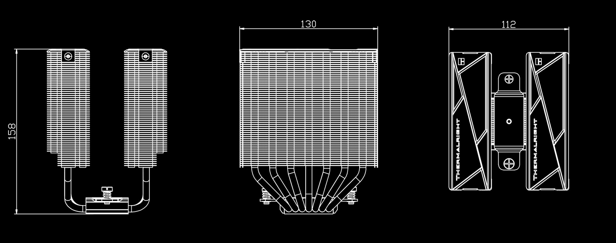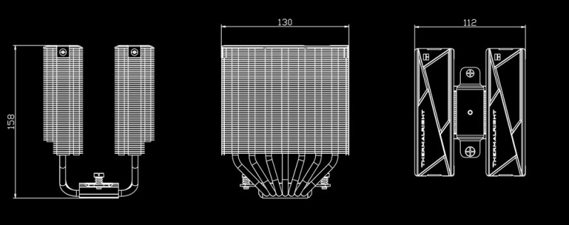 A 158 mm magas, ventilátorok nélkül 130 mm széles, valamint 112 mm mély megoldás fedőlappal ellátott bordázatait hét darab, 6 mm-es átmérővel rendelkező hővezető cső kapcsolja a nikkelezett réztalpához, és a rajta push-pull konfigurációban megtelepedett, folyadékcsapágyas léghajtók egyike 120 (TL-K12), a másik pedig 130 mm-es (TL-HD13-X28).