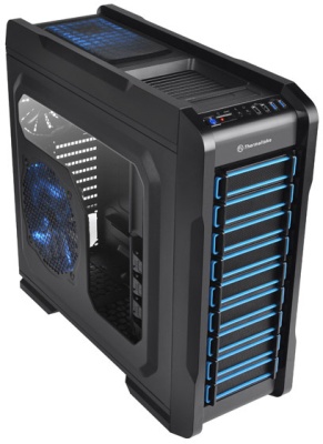 A Thermaltake-nél nincs megállás, rövid időn belül már a harmadik Chaser sorozatba tartozó ház érkezik a kínálatba: az A31 és A41 után most itt a A71, a család legnagyobb tagja. Az ATX és microATX mellet E-ATX méretszabványú alaplapok befogadására képes 537 x 221 x 565 mm-es méretekkel rendelkező, acélból formázott, alsótápos toronyház természetesen dizájnban és felépítésben is szorosan követi a sorozat nemrégiben bemutatott tagjait. A kívül-belül feketére fényezett kasztnin itt is megjelennek a kék díszbetétek, de a dizájn sem üt el az eddig megismerttől, főleg az A31-es modellel vonható párhuzam.