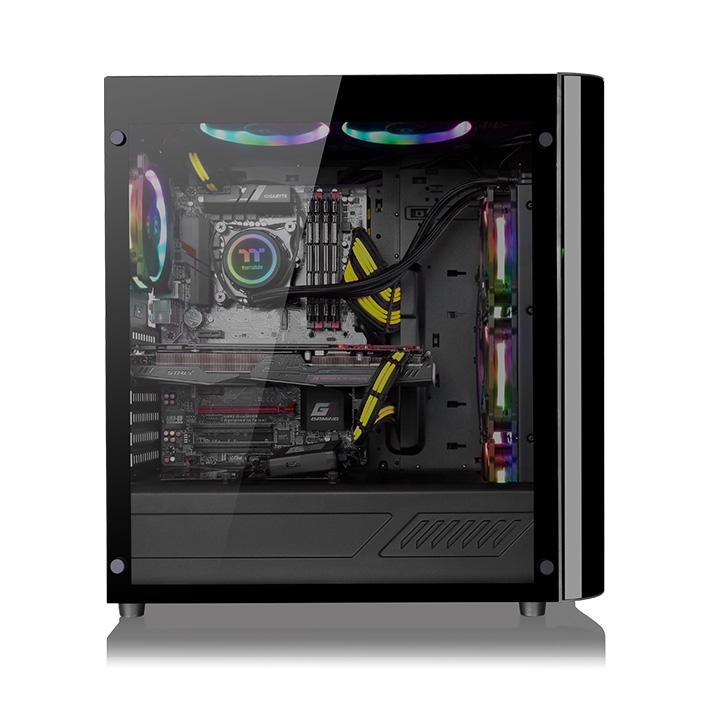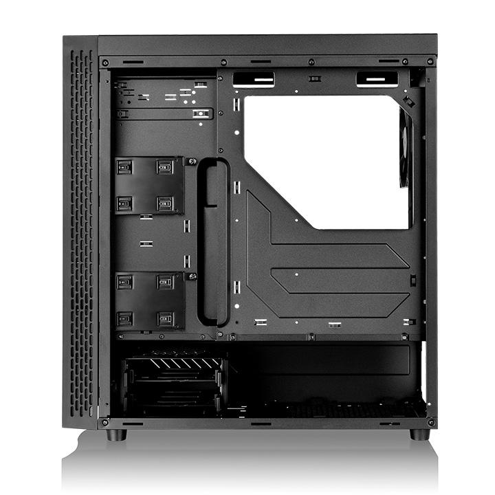 A belső felépítés egyébként nélkülözi az 5,25"-es meghajtóhelyeket, és relatíve szűkre szabták korlátokat, a tápegység ugyanis legfeljebb 160 milliméter hosszú lehet, illetve a processzorhűtő sem nyújtózhat 160 milliméternél magasabbra. A VGA-val viszont nem lesz gond, a 40 centiméteres limit elegendőnek mondható. Adattárolókból két 2,5"-es SSD vagy HDD rögzíthető az alaplaptálca hátoldalára, míg további két 2,5"-es vagy 3,5"-es egység rejthető el az alsó boxba, így lényegében egyik sincs szem előtt. A hűtés alapelemét képzik a már említett előlapi ventilátorhelyek, ahova legfeljebb egy pár 140 milliméteres vagy három darab 120 milliméteres szélgép helyezhető. Ugyanez a helyzet a felső lemezen is, ami mellé megkapjuk a szokásos 120 milliméteres hátlapi szellőzőnyílást, méghozzá beépített ventilátorral. Az imént felsorolt helyekre természetesen vízhűtéses radiátor is felszerelhető.