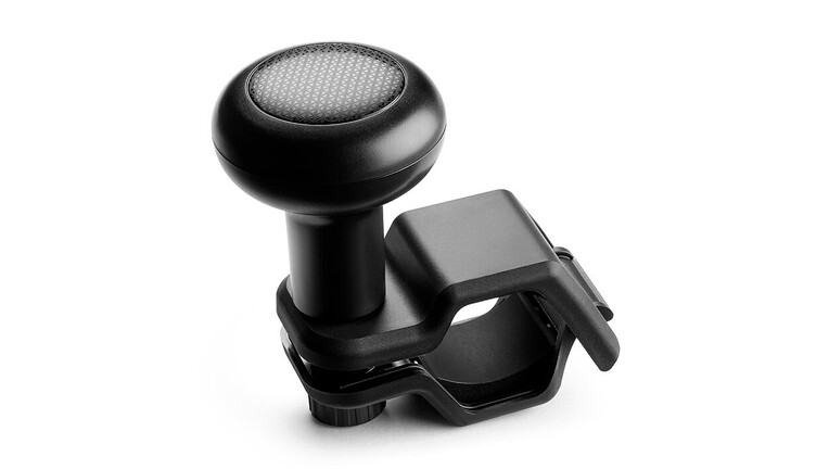 A csomag egy egykezes kanyarodásra kényelmes módot biztosító, kormánykerékre erősítendő (acélbilincses) fogantyúból és egy szervó felfogatását lehetővé tévő, 2 mm vastagságú, satusan fixálható fémvázból áll. Az utóbbit három tengely mentén állíthatjuk, és 15-50 mm közti vastag asztallaphoz rögzíthetjük, ráadásul 15-85 fok között könnyedén megváltoztathatjuk a volán dőlésszögét, illetve 30 mm-es határon belül a magasságát is.