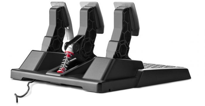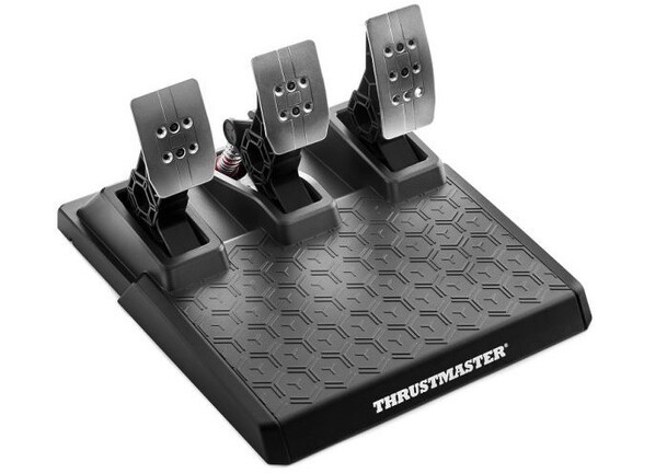 Ugyanerre az elvre épül a mellékelt, három fém pedállal szerelt T3PM egység is, vagyis a gyártó precízebb és tartósabb megoldásra cserélte a korábbi potméteres verziót, a fékpedál erőssége ráadásul nem kettő (ahogy az a T150 Pro esetében gyárilag volt), hanem négy szinten állítható a mellékelt extra rugóknak köszönhetően.